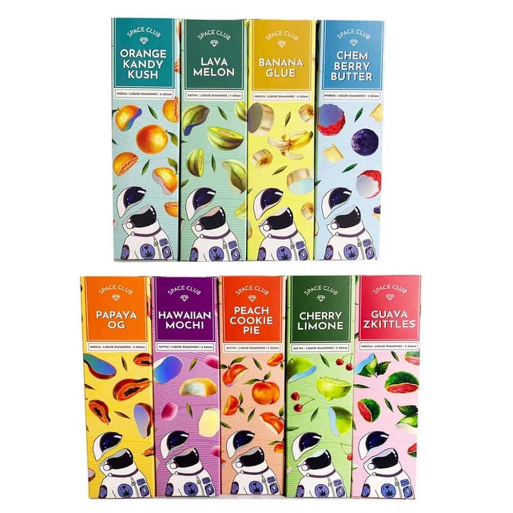 | FLAVORS | Apple Rings, Berry Gelato, Blueberry Pebbles, Cherry Limone, Galactic Cookies, Grape Gusher, Guava Zkittles, Mango Mimosa, Moon Pie, Pineapple Diesel, Pink Starburst OG, Strawberry Shortcake, Super Lemon Haze, Tangie Kush, Watermelon Runtz |